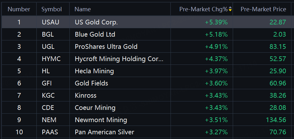 Precious metal shares and ETFs jumped in premarket trading. US Gold, Blue Gold up over 5%; UGL, HYMC up over 4%.