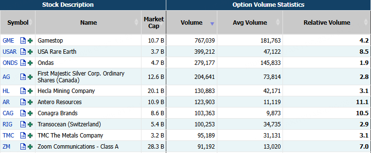 Top 10 Option Volumes