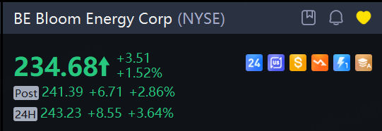 Bloom Energy shares gained 3.6% post-market Monday after Oracle and BorderPlex Digital Assets said they will utilize Bloom's fuel cells to fully power the planned multi-billion dollar Project Jupiter AI data center campus in New Mexico.