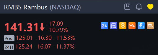 Shares of Rambus fell 11.4% in overnight trading after the company issued guidance for the second-quarter with a midpoint below Wall Street's expectations.