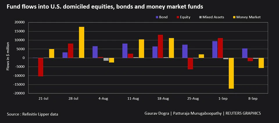 Sept 13 (Reuters) - U.S. equity funds faced an outflow in the week to Sept. 8, on concerns the spread of the Delta coronavirus variant could slow economic growth and uncertainty over the timeline for the Federal Reserve to pull back its accommodative policies.