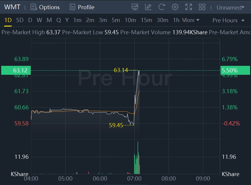 Shares of the Bentonville, Arkansas-based company were up 5.5% in premarket trading.