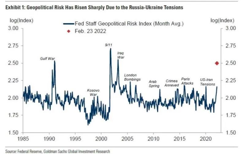 回顾了历史上美联储对待地缘政治事件的态度,高盛重点分析了美联储现在的处境。该行称,“当前的情况与过去几次不同,当时地缘政治事件导致美联储推迟收紧或进行宽松的货币政策,因为通胀风险为美联储今天收紧货币政策创造了比过去几次更强烈、更紧迫的理由”。