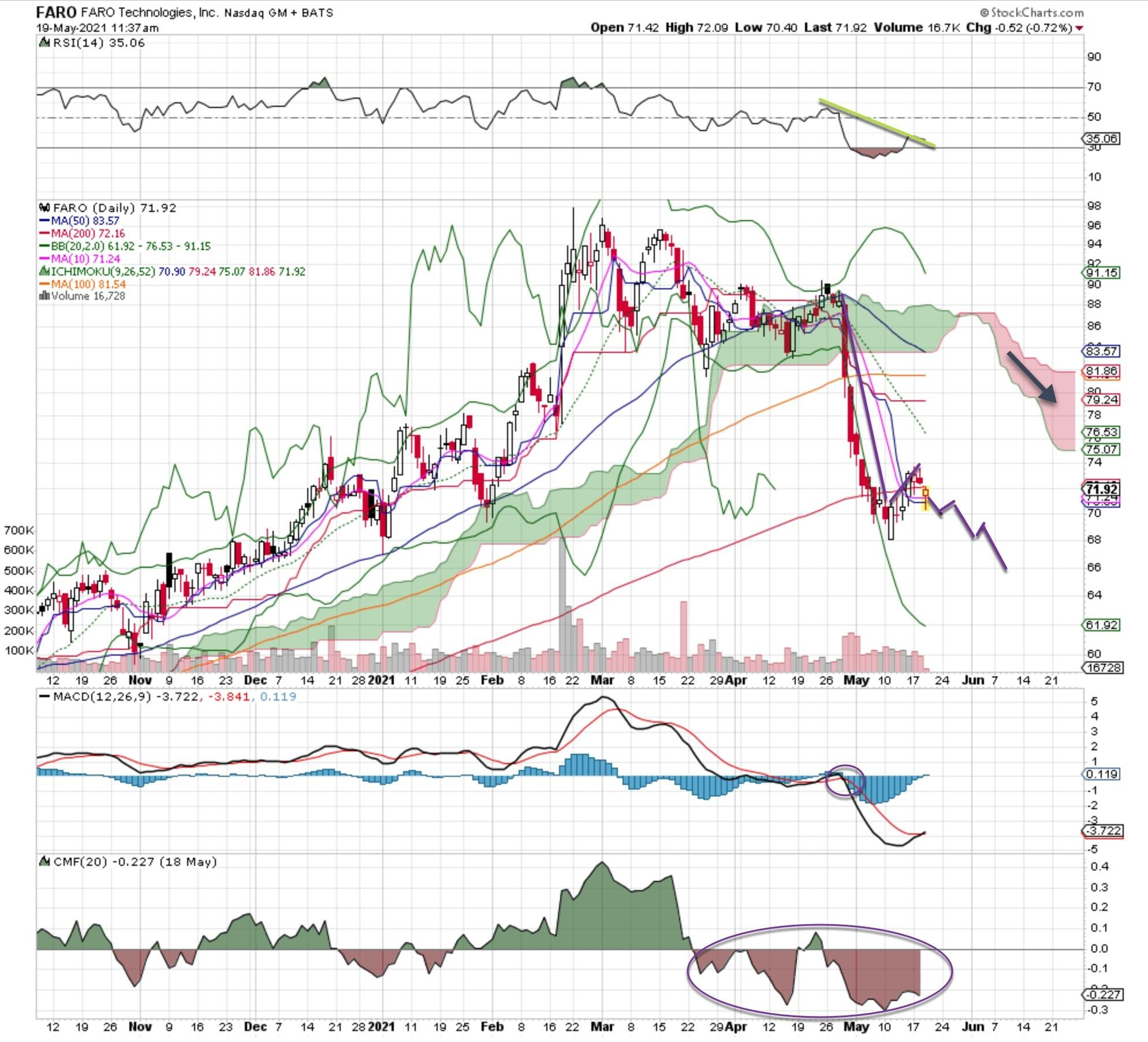 It isn't often an ideal setup has good timing with it, but that seems the case with Faro, as a bearish flag is in place. That means this stock is about to fail here, and a close under the 200-day moving average proves it.
