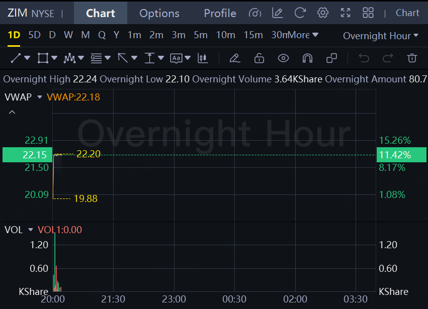 Shares of Zim Integrated Shipping Services shares rose 11% in overnight trading after the company said it had received several acquisition proposals.