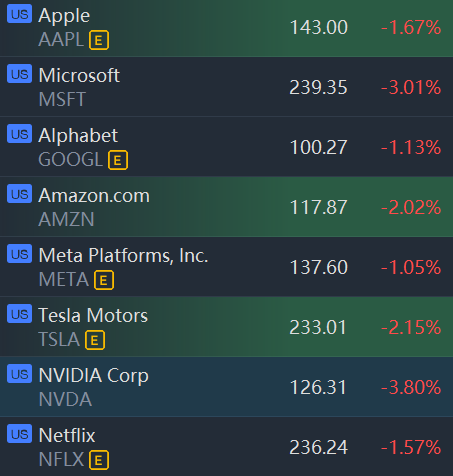Big tech stocks plunged in morning trading. Nvidia fell 3.8%; Microsoft fell 3%; Amazon and Tesla fell 2%; Apple, Alphabet, Meta Platforns and Netflix fell 1%.