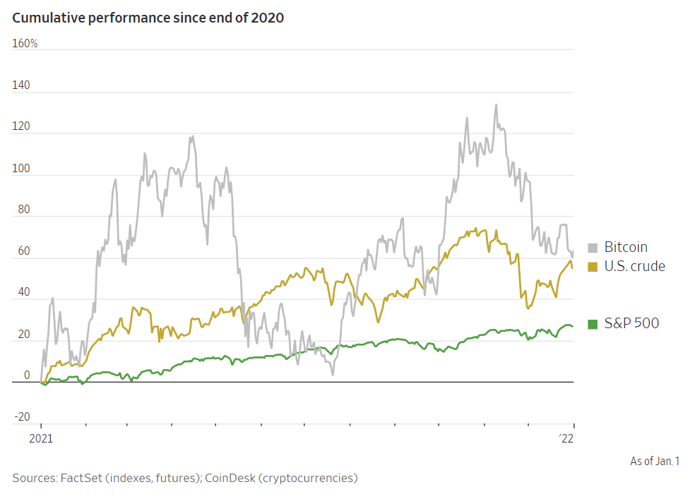 Investors had plenty to feel good about over the holidays. Supported by an economic rebound even stronger than most had expected, the S&P 500 climbed 27% in 2021, the third-largest gain of the past 20 years. U.S. crude surged 55% to roughly $75 a barrel. Interest rates on corporate bonds hovered around all-time lows, reflecting little perceived risk of default after a year in which few businesses went bankrupt.