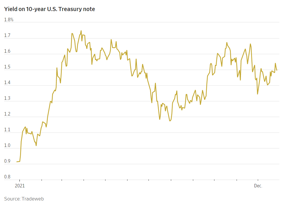 Still, few investors expect 2022 to go as well as 2021, with the Federal Reserve on the verge of raising interest rates, a new Covid-19 variant sweeping the country and government aid to families dwindling. Already, oil prices have slipped 11% since their highs in late October, reflecting traders’ concern about slowing demand for fuel. The S&P 500 spent much of the past two months trading sideways, while some speculative investments, such as shares of smaller, fast-growing tech companies, fell sharply—hurt by fears that they would be especially vulnerable to tighter monetary policies.