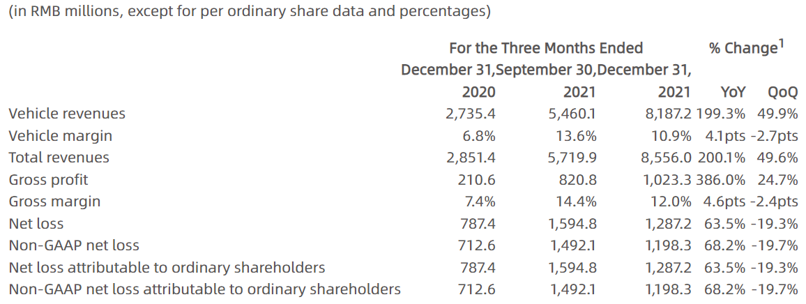 - Revenues from vehicle saleswere RMB8,187.2 million (US$1,284.7 million) for the fourth quarter of 2021, representing an increase of 199.3% from the same period of 2020, and an increase of 49.9% from the third quarter of 2021.
