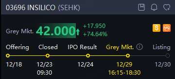 Artificial intelligence-powered drug developer Insilico soared 75% in HK grey market.