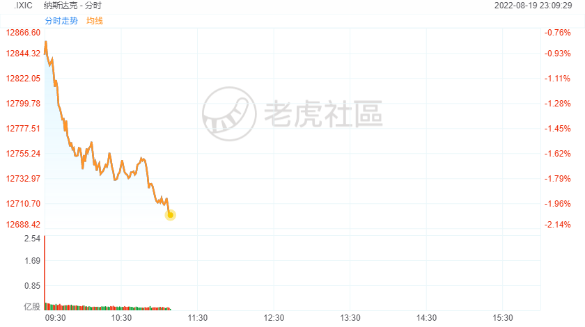 8月19日,美股持续走低,纳指跌2%,明星科技股普遍走低,英伟达跌超4%,奈飞、Paypal跌超3%,特斯拉跌近3%。