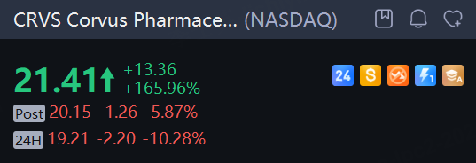 Corvus Pharmaceuticals said late Tuesday it launched an underwritten public offering of $150 million of common shares and pre-funded warrants. The shares dropped 10.3% in overnight trading.