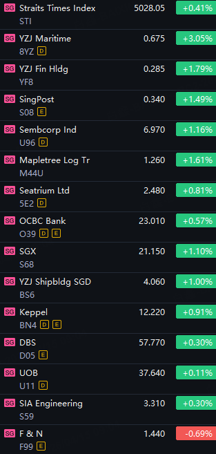 Frasers and Neave (F&N) : The beverage giant will invest up to NZ$20.1 million (S$15 million) in New Zealand-based honey producer Comvita. The group on Wednesday said this comes as the company shapes its portfolio with a focus on categories where there is resilient demand and long-term growth. The counter closed at S$1.45, down 0.7 per cent or S$0.01, before the news.