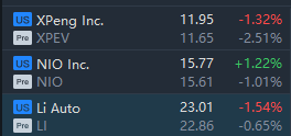 NIO, XPeng and Li Auto slipped in premarket trading after showing their deliveries in September.