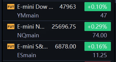 At 7:50 a.m. ET, Dow E-minis were up 47 points, or 0.10%, S&P 500 E-minis were up 11.25 points, or 0.16% and Nasdaq 100 E-minis were up 74 points, or 0.29%.