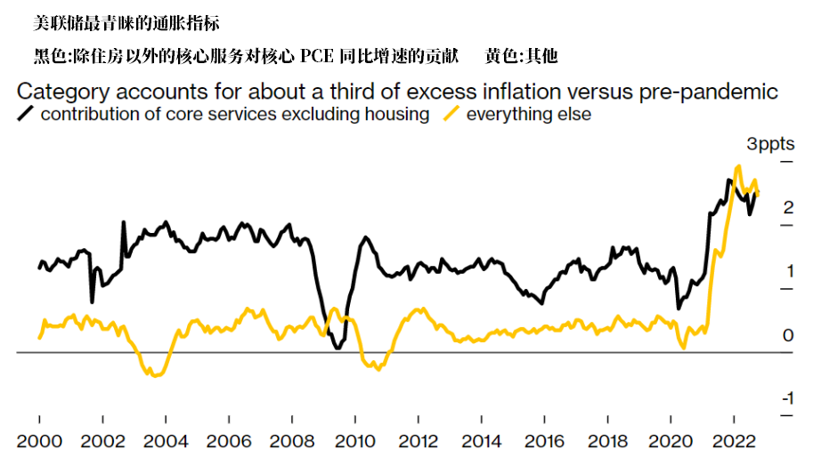 鲍威尔最新青睐的通胀指标——不包括住房的核心服务通胀与薪资增速密切相关。