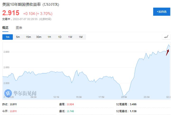 基准10年期美国国债收益率保持升势,纪要公布后站上2.90%,一度升破2.92%刷新日高,日内升幅超过10个基点,较周三欧股盘中下测2.75%所创的一个多月来低位回升约17个基点。