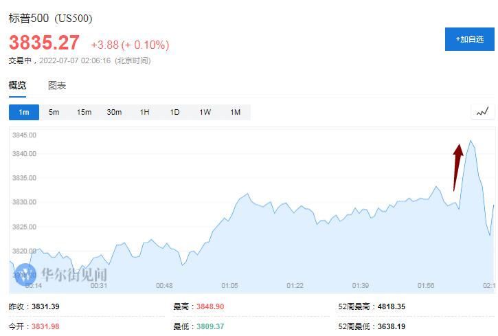 午盘时段美联储会议纪要公布后,美股先回落后很快短线拉升,三大美股指盘中齐涨。