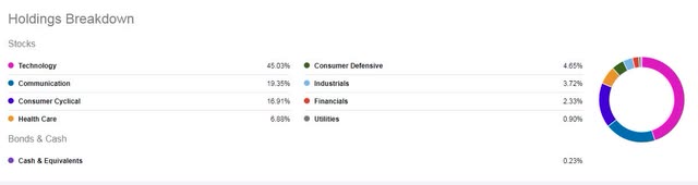 You can also see that while these stocks skew heavily towards tech and communications, Moderna, which is a health care stock is by far the most important. Most of these are recently listed companies that have not yet made a profit, but have attracted lots of growth investors. Remember there are another 3,400 or so stocks in the Nasdaq that are not in QQQ. It represents only the Nasdaq stocks that have attracted the most investors.