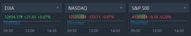 U.S. stocks mixed in morning trading. Dow Jones rose 0.07%; S&P slid 0.22% while Nasdaq fell 0.97%.