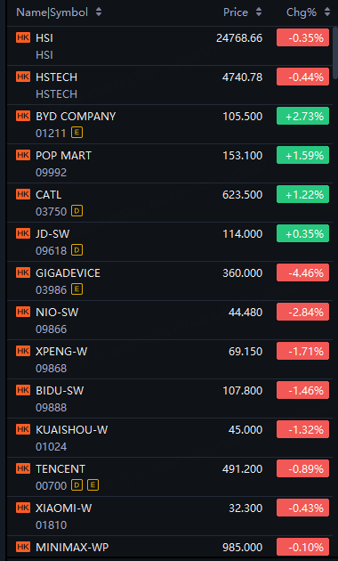 In terms of star stocks, BYD up 3%; Pop Mart up 2%; Nio fell 3%; XPeng fell 2%; Kuaishou, Tencent down 1%.
