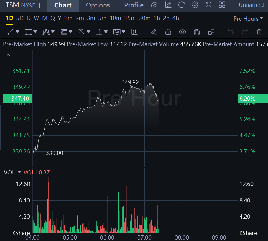 US-listed TSMC shares rose 6% in premarket trading after earnings.