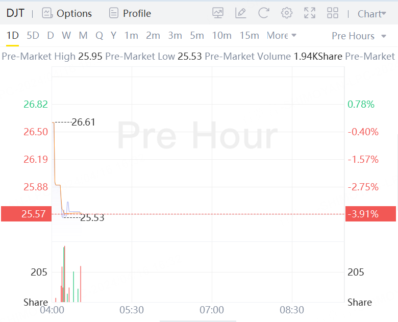 Trump Media shares continue to fall 3.91% after a 18% decline on Monday.