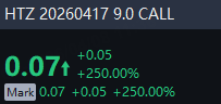 A total number of 492,189 options related to Hertz Global Holdings, Inc. were traded on Tuesday, of which call options accounted for 57%. Particularly high volume was seen for the $9 strike call option expiring Apr. 17 with 102,686 contracts trading. $HTZ 20260417 9.0 CALL$