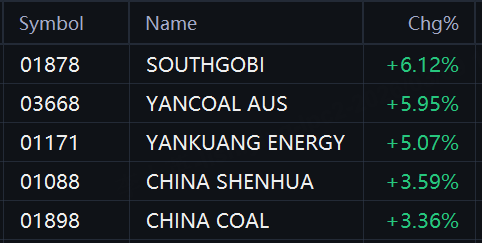 Coal stocks jumped in Hong Kong. SouthGobi and Yancoal Australia rose 6%; Yankuang Energy rose 5%; China Shenhua rose 4%; China Coal rose 3%.
