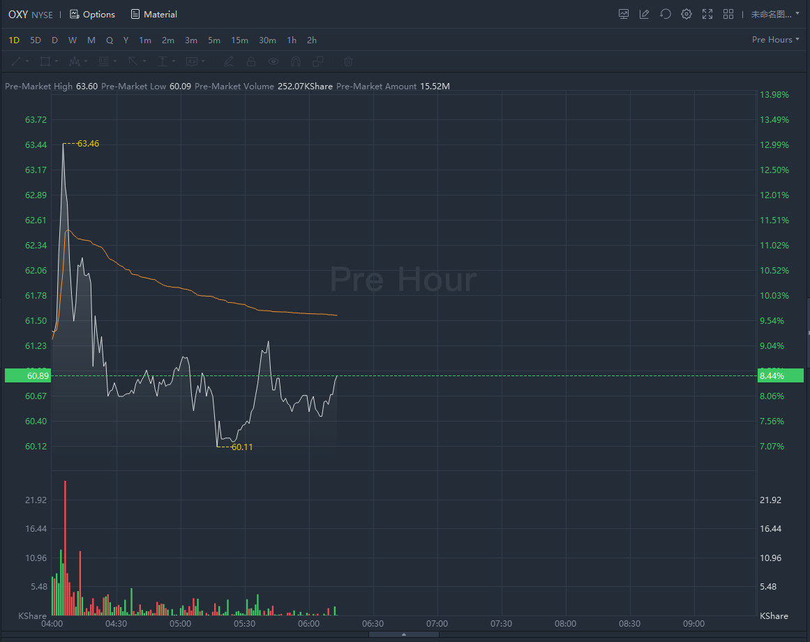 Occidental Petroleum jumped 8% as Buffett discloses $5B stake.