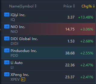 Hot Chinese ADRs continued to jump in morning trading, with iQiyi rising over 13% and Nio rising over 3%.