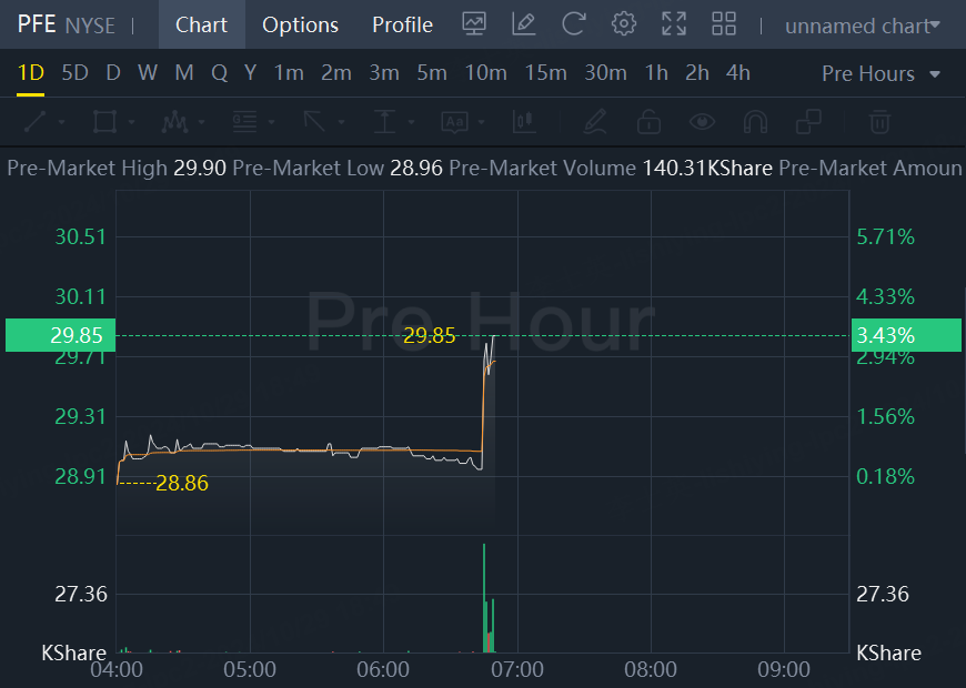 Shares of the U.S. drugmaker rose 3.4% to $29.85 in premarket trading.