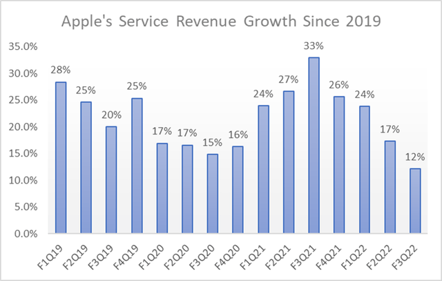In fact, when I look at the quarter-by-quarter services growth chart below, it becomes clear that the services segment is no longer the exciting growth engine that it once was. Notice (1) the descending trend through 2019 that may have been secular, followed by (2) a spike that coincided with the monetary and fiscal incentives during the first half of the COVID-19 crisis, followed by (3) another leg lower in the post-pandemic period that could now culminate in the slower growth rate since 2019 at least, if not much longer.