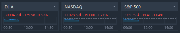 U.S. stocks extended their losses in morning trading; Dow Jones slid 0.59%, S&P 500 fell 1.04% while Nasdaq crashed 1.71%.
