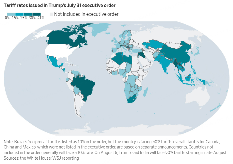 Trump’s July 31 executive order set higher tariffs for about 70 trading partners starting Aug. 7.