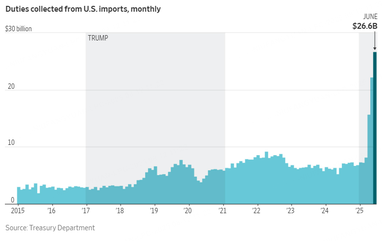 Revenue from duties on U.S. imports jumped in recent months after Trump imposed new tariffs. American companies have borne much of the cost so far, although some of them are planning to pass costs to consumers through increased prices.