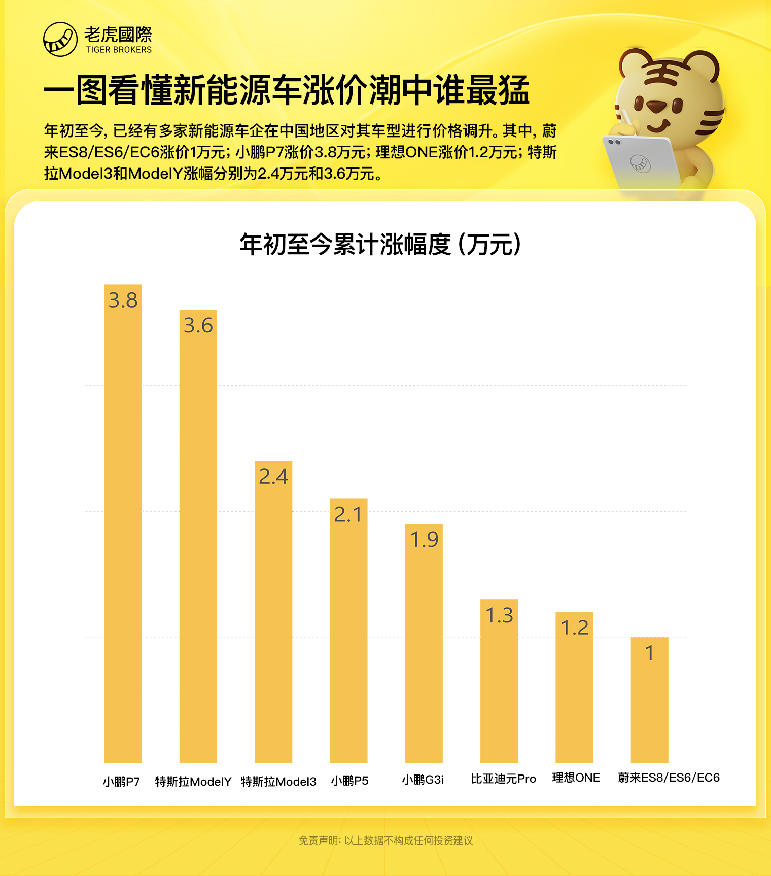 小鹏的P7、P5、G3i车型分别累计涨价3.8万元、2.1万元、1.9万元;