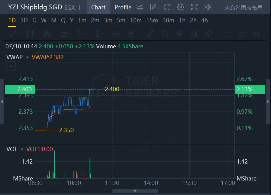 YZJ Shipbldg SGD jumps 2.13% at 10:45 am, July 18th.