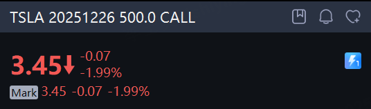 There are 2.33 million Tesla option contracts traded on Monday, down 38% from the previous trading day. Call options account for 62% of overall option trades. Particularly high volume was seen for the $500 strike call option expiring December 26, with 162,840 contracts trading. TSLA 20251226 500.0 CALL