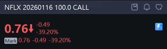 There are 402.92K Netflix option contracts traded on Monday, down 31% from the previous trading day. Call options account for 68% of overall option trades. Particularly high volume was seen for the $100 strike call option expiring January 16, 2026, with 21,237 contracts trading. NFLX 20260116 100.0 CALL