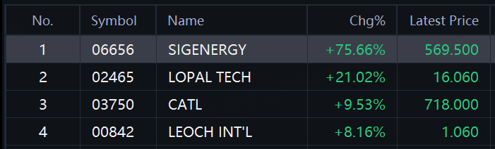 Sigenergy Technology Co, a China-based energy storage firm, surged 75.66% in its first trading day.