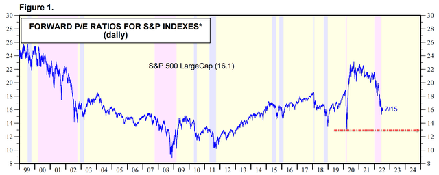 More specifically, the FW P/E of the 500 large-caps in the S&P 500 is currently 16.1x as you can see from the first chart below. Its current valuation is about 24% above its bottom valuation around 13x amid the COVID crash.