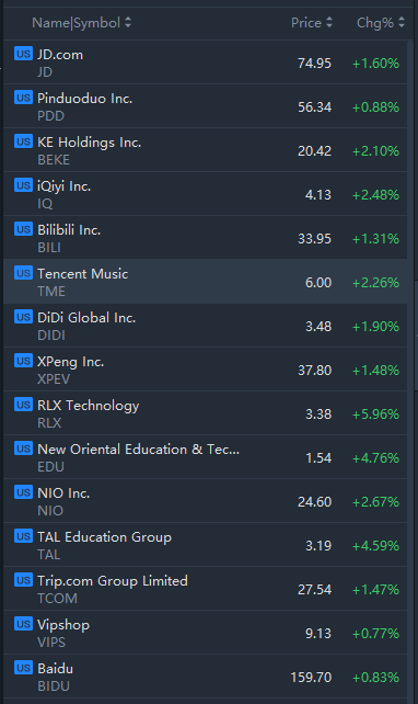 JD.com, RLX Technology, DiDi, Tencent Music, Bilibili climbed from 1% to 6%.