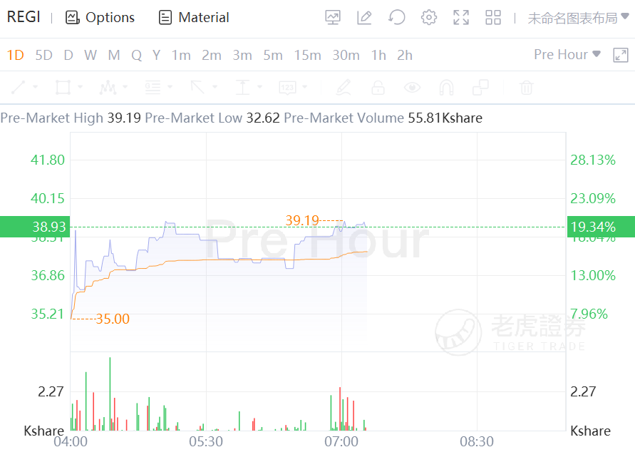 Renewable Energy Group surged 19% pre-market following a Bloomberg report that the biodiesel maker is exploring options including a potential sale after receiving takeover interest.