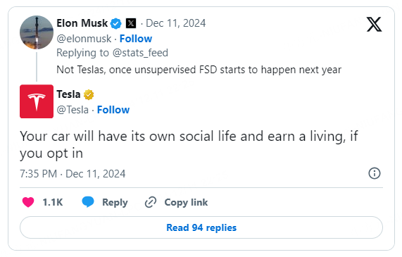 He actually trimmed his earnings estimates, noting slower EV growth, but added investors are interested more in Tesla’s AI opportunity. Tesla uses AI computing to train its cars to drive themselves. The company plans to start its robo-taxi service in late 2025.