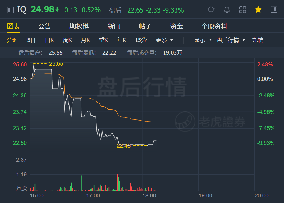 财报公布后,爱奇艺盘后股价跌逾9%。