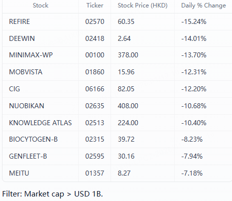 Large-cap tech retreated: Tencent -1.21%, Alibaba -3.49%, Meituan -1.50%, and Bilibili -6.85%, while Baidu +1.24% and BYD Company +1.51% provided limited support.