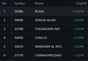 HK Aluminum Concept Stocks Surge; RUSAL Up 13%; XINGFA ALUM Up 6%; CHUANGXIN, CHALCO and NANSHAN AL INTL Up 2%; CHINAHONGQIAO Up 1%.