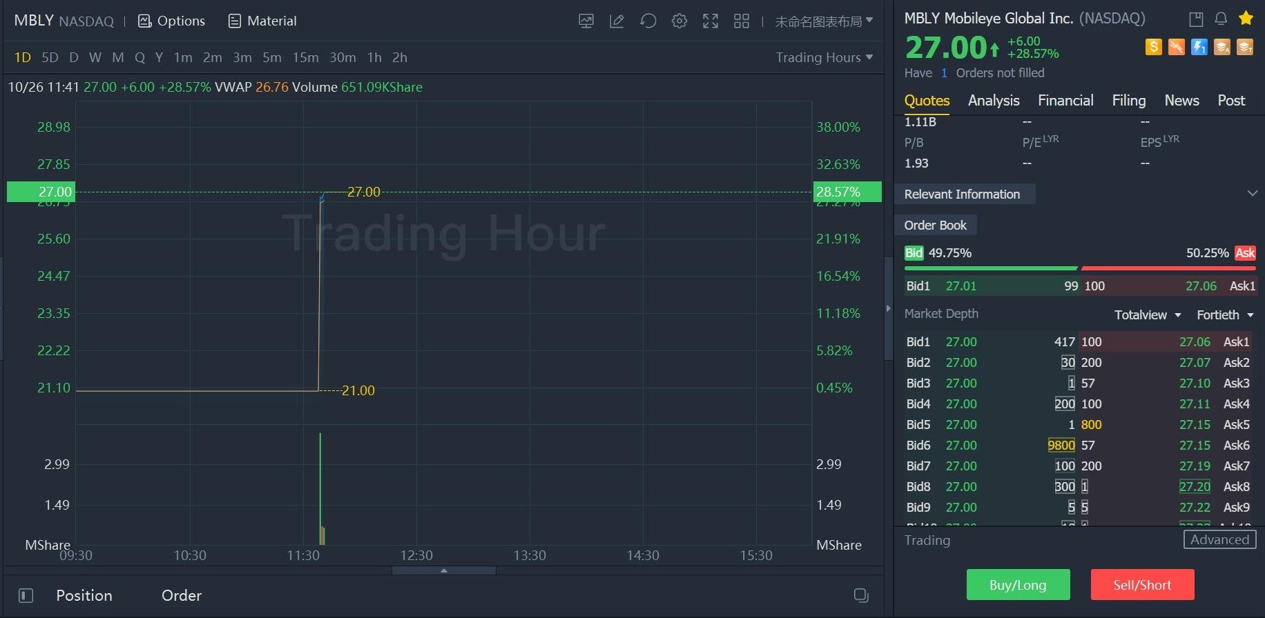 Intel unit Mobileye spikes 28% on its first day of trading.