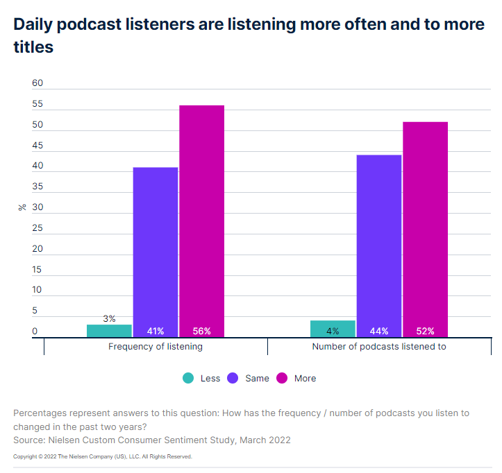 Amazon Music and Audible also are rising in popularity and could become a home to many popular podcasts in the upcoming future. Currently, Amazon Music's market share is the third largest in the industry at 13%. This is behind Apple (AAPL) at 15% and Spotify (SPOT) at 31%. However, each music streaming service has nearly identical libraries. This means the only separating factors across each platform is exclusive podcast talent. Amazon may want to consider signing exclusive podcast talent as the market for podcasts has risen drastically in previous periods. Over the past three years, the listener base for podcasts has grown by over 40%, with 51% of consumers starting to listen to podcasts over the past two years.